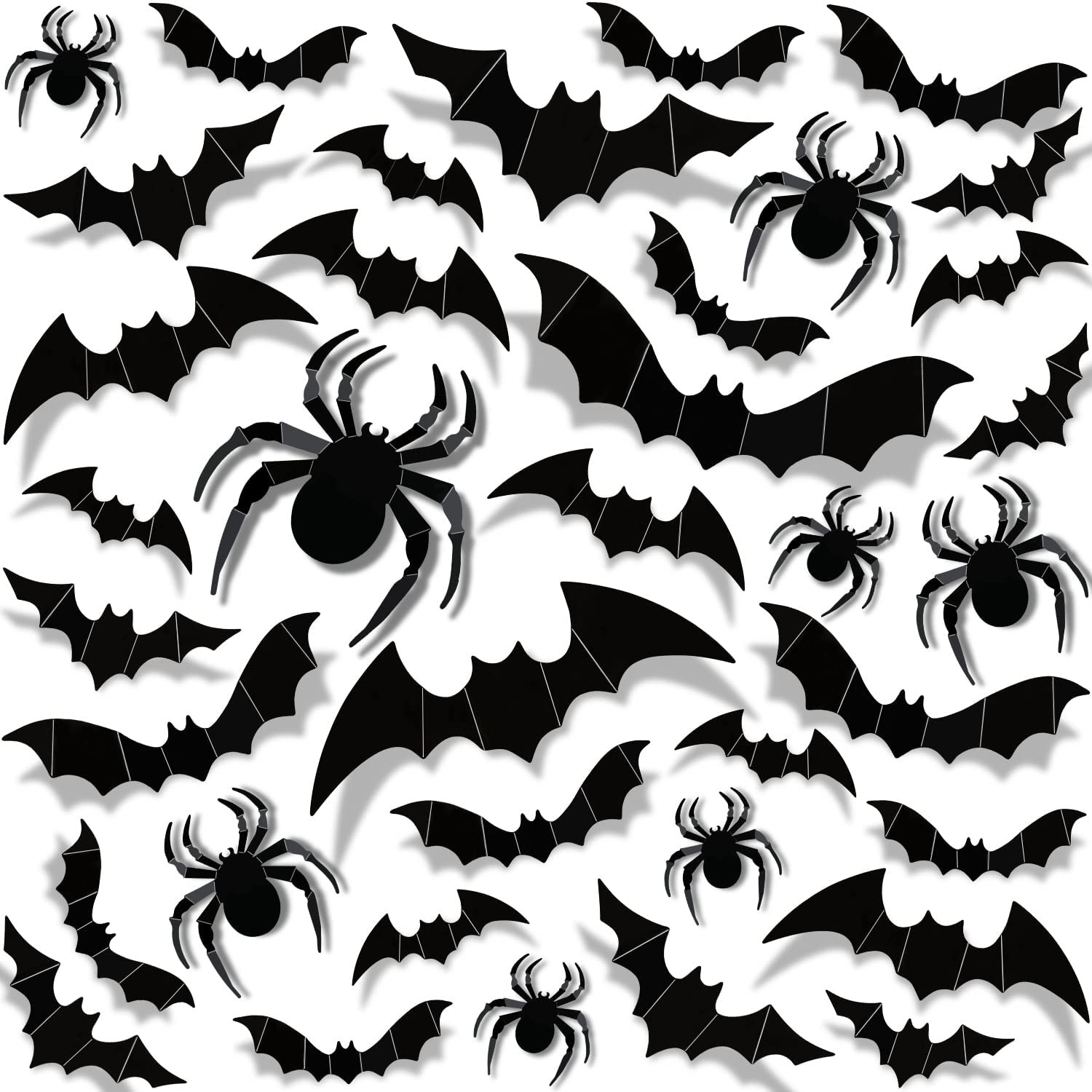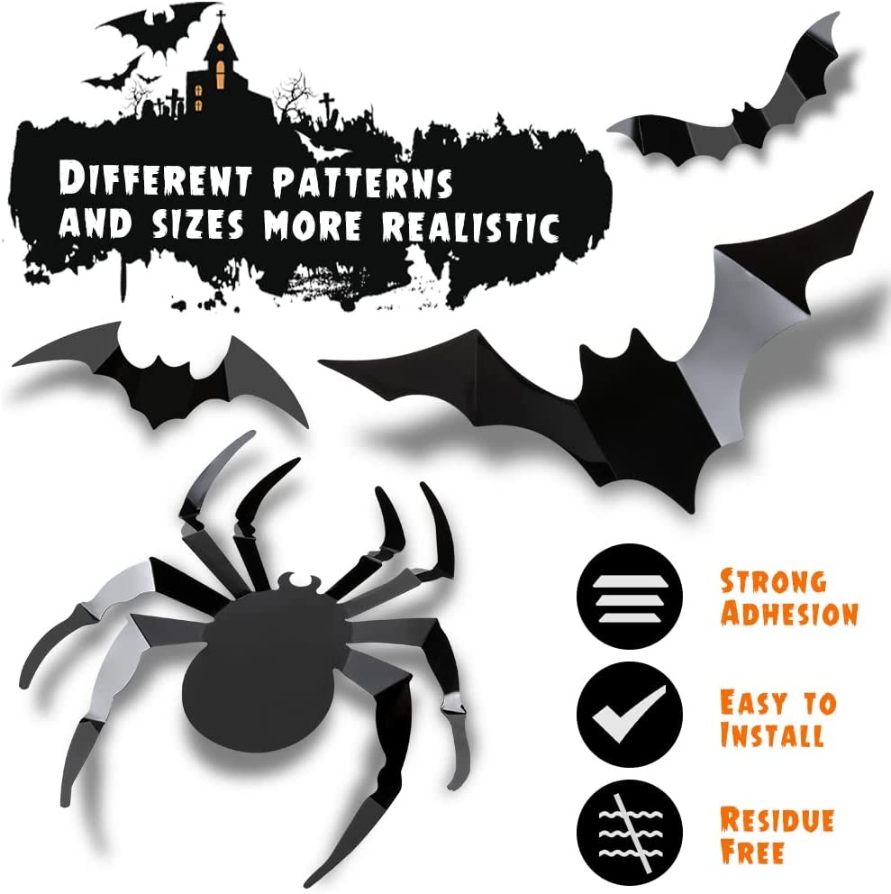 Easy to Use and Not Fall Off - Made of PVC waterproof material, non-toxic, durable, can maintain its shape for a long time. The wings of all bats and spider are added with score lines to help bend better, you can fold its into various angles and fixed, and get a perfect 3D appearance. These Halloween bats&spider decorations use upgraded version of glue, good viscosity, not easy to fall off. Fit many smooth & dry surface like painted wall, glass, tile(Clean the dust before applying)