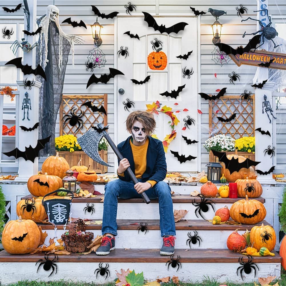 Halloween Indispensable Indoor Decor - The black bats and spider stickers added a horror and weird atmosphere on Halloween. Great for decorating on cabinets, doorway, living room, kitchen, stairs, bedroom, windows, etc..You can decorate it anywhere you want in the house. It will make your house full of Halloween atmosphere, adding the party and the festival more fun