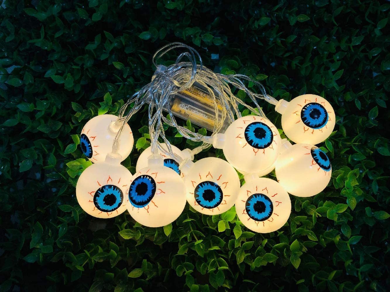 Quenny Carnival Party Garden Decoration Lantern,LED Halloween Pumpkin Ghost Eyeball Light String. (Battery Box:3 Meters 20 with Lights, Warm White)