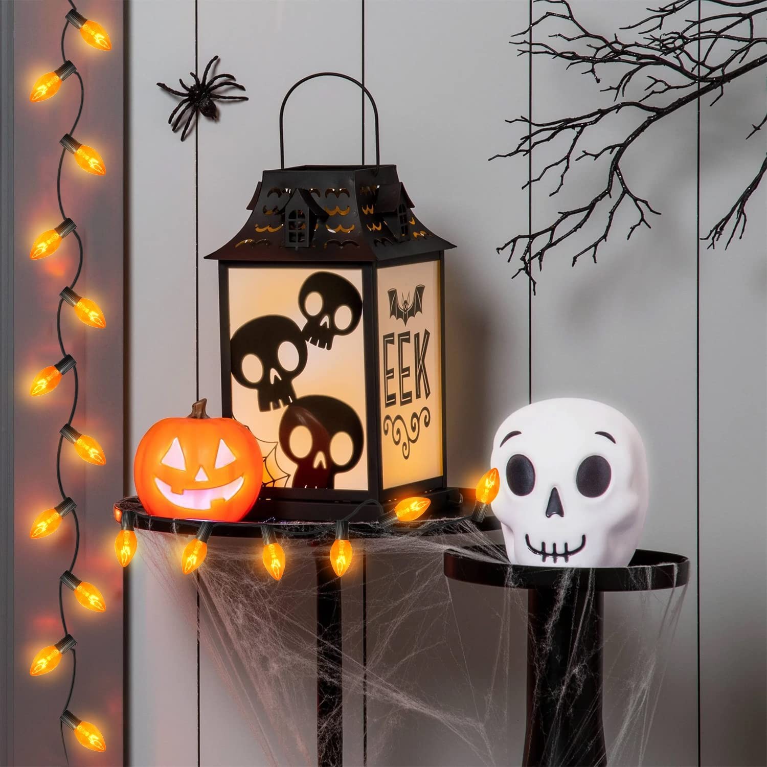 ?5 Watts Transparent Orange C7 incandescent bulbs. UL Listed for Outdoor & Indoor safe use. Fits for C7 Christmas String Lights. ?25 pack C7 Orange replacement bulbs, 120 Volts. ?Material: Bulbs are made of Glass, E12/C7 Nickel Candelabra base, Each C7 Christmas light bulb base is made of High quality nickel material which will form a very dense and strong protective film to prevent corrosion from weathering. ?Environmental: Made of unique glass material, C7 replacement bulbs is more easy to clean and not fade than usual bulbs.Widely use for indoor, outdoor, Christmas, tree and Halloween string lights. ?Quick & Easy to Install: Set up your string lights in minutes. Always mount the string first before screwing in the light bulbs. This bulb works great for house rooflines during the holiday season or strung in a canopy patio usage.For C7 orange string lights, please search:B0B24TMDPF.