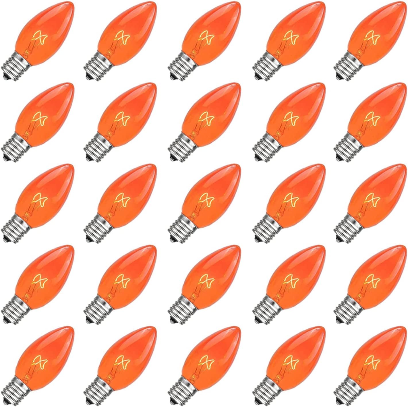25 Pack Orange Halloween Replacement Bulbs C7 Glass Replacement Bulbs for Outdoor String Light, Patio Lights, C7/E12 Candelabra Base 5 Watt Great for Night Lights and Christmas Bulbs