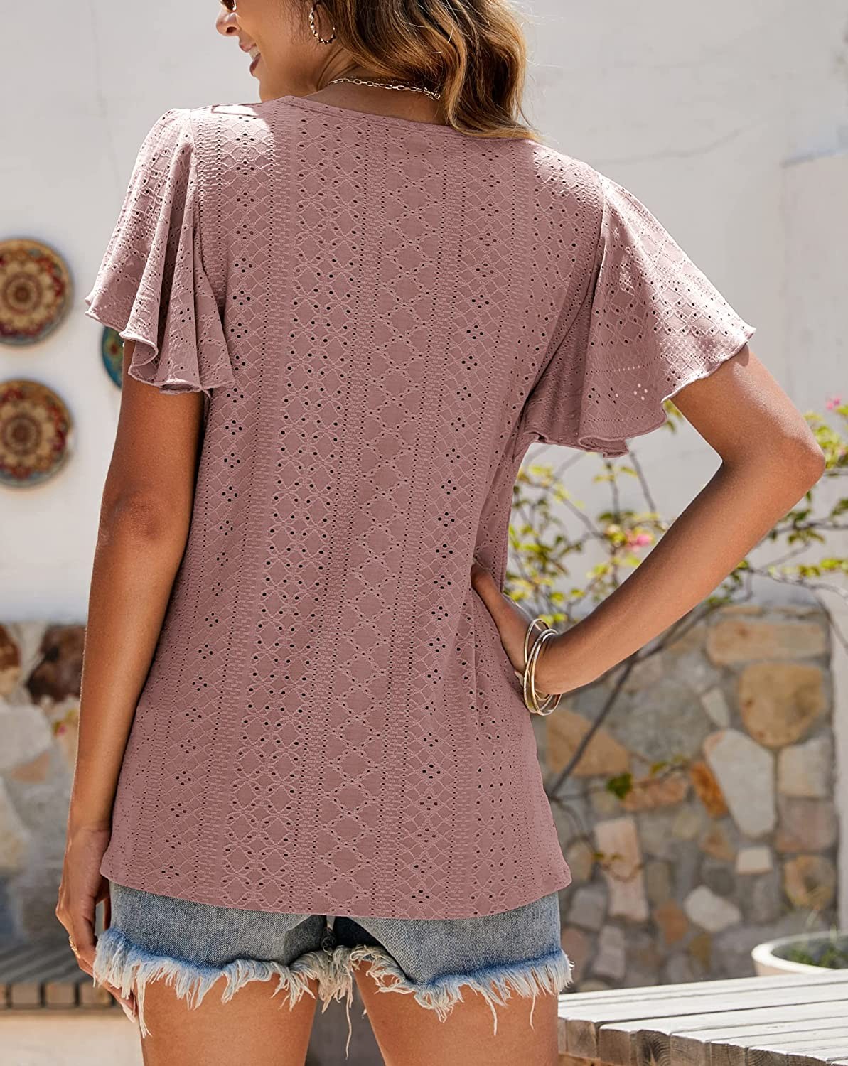 [Occasion]-This short ruffle sleeve t-shirt is perfect for daily style, business, work office, home wear, work at home, casual wear or party, night out, summer,spring and fall holidays, going out,back to school, street look, etc. Care:Machine or Hand Wash with Cold Water/Hang or Line Dry/No Bleach/No Dry Clean.