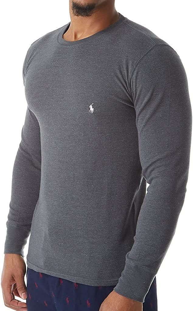 Polo Ralph Lauren Waffle Long Sleeve Crew Charcoal Heather/Nevis Pony Print MD