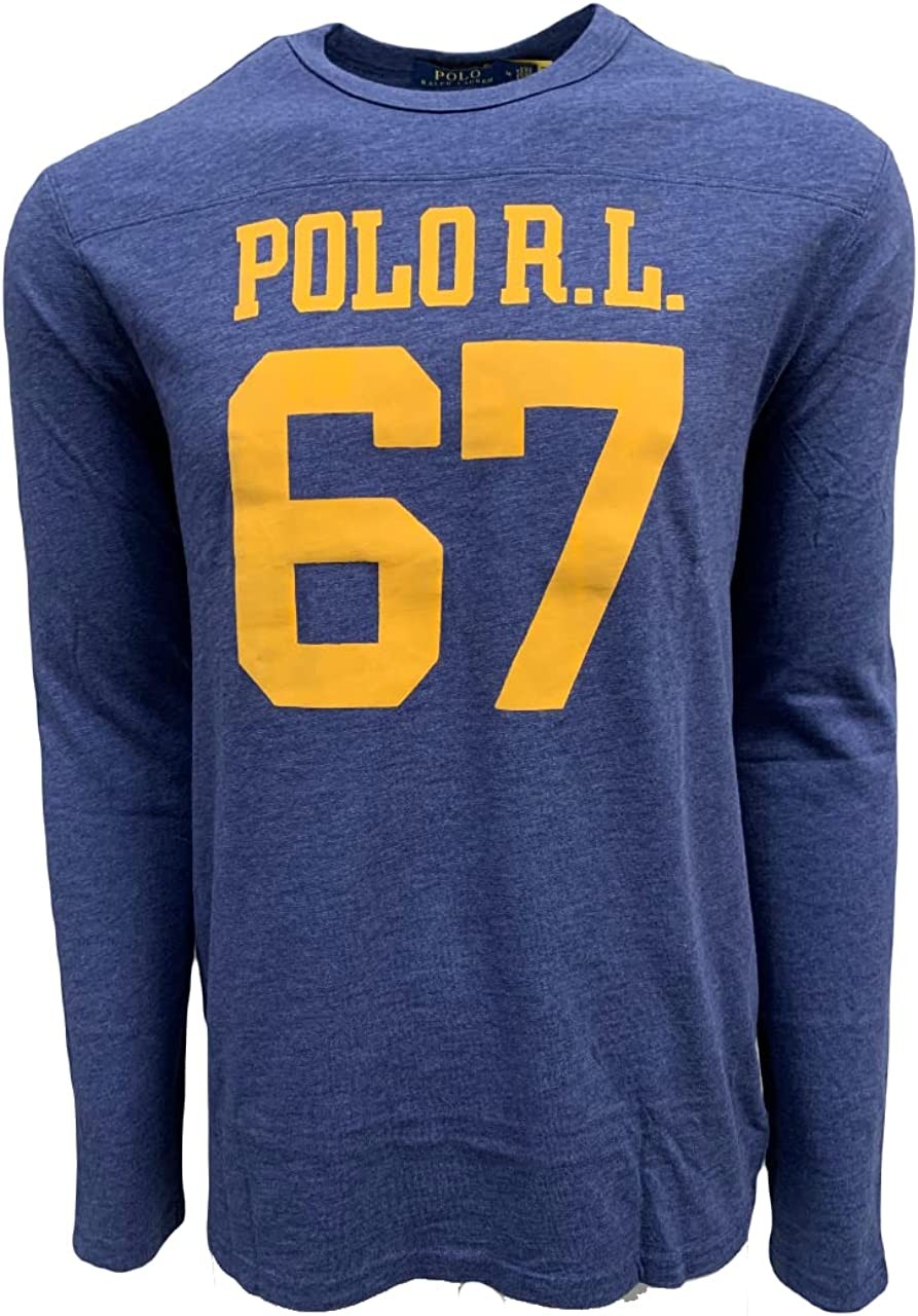 Polo Ralph Lauren Mens Screened 67 Logo Jersey Long Sleeve T-Shirt (L, Navy Heather)