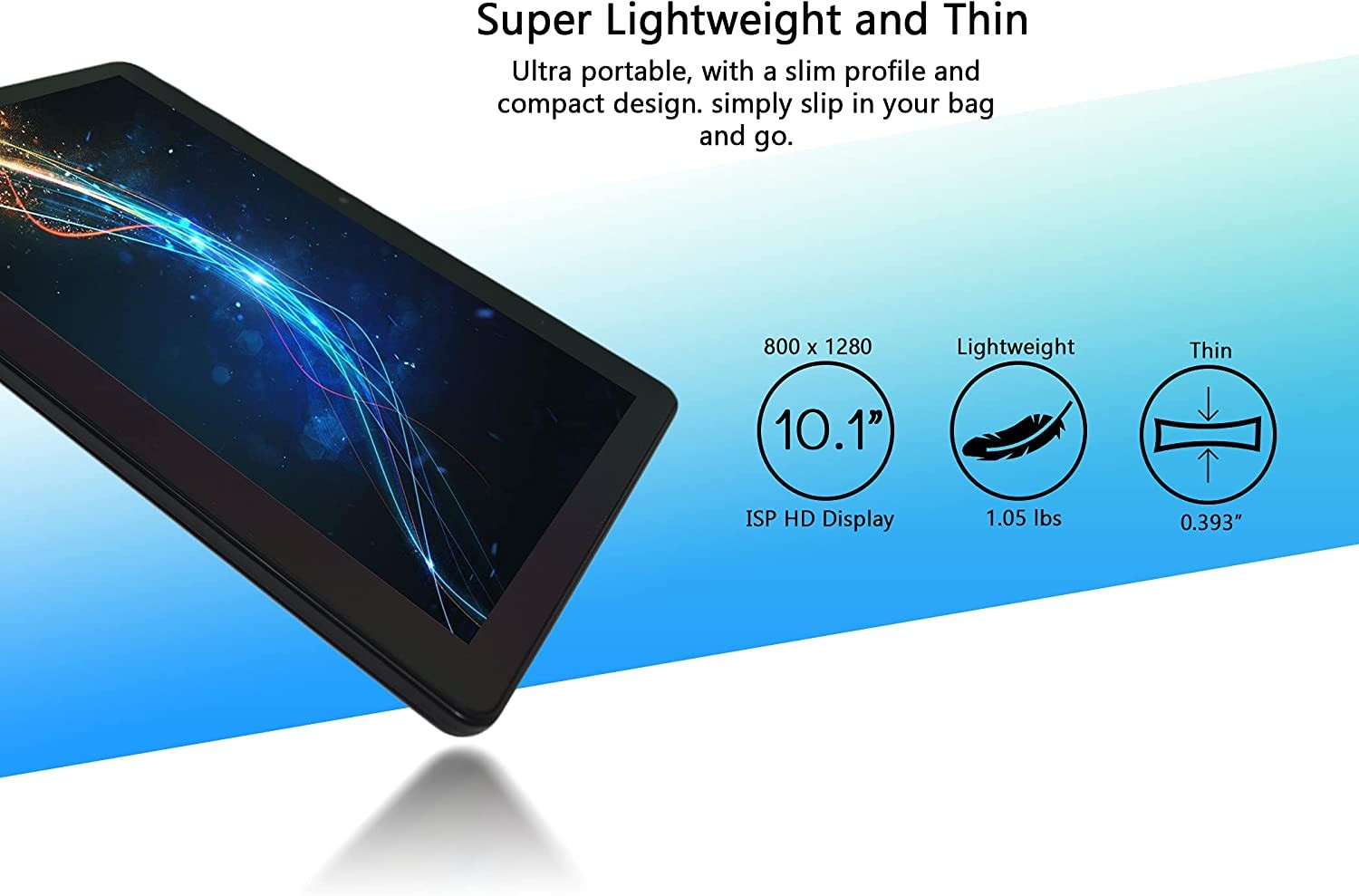 HD IPS DISPLAY: 10.1” 1280 x 800 HD LCD IPS Display Pictures, Play Videos, and even Video Chat with Skype or Zoom. Quad Core CPU up to 1.6 Ghz.