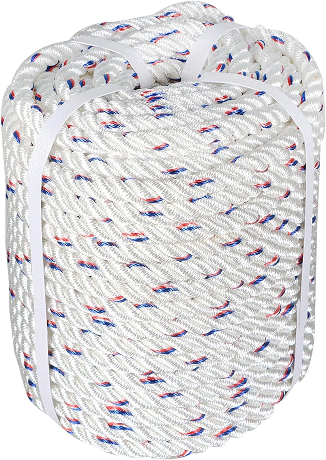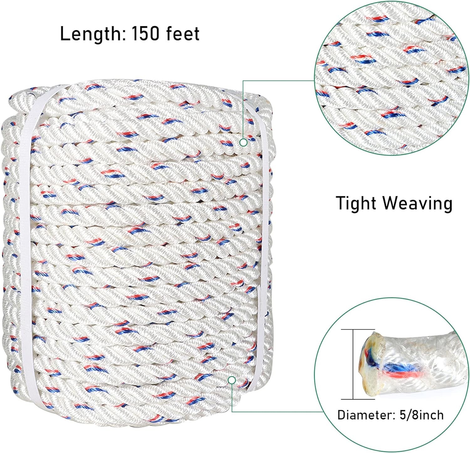 elfinrm 5/8 Inch x 150 Feet Double Braid Polyester Rope, Arborist Bull Rope High Strength Polyester Rope for Tying Goods, Clothesline, Swing Etc(White/Red/Blue)