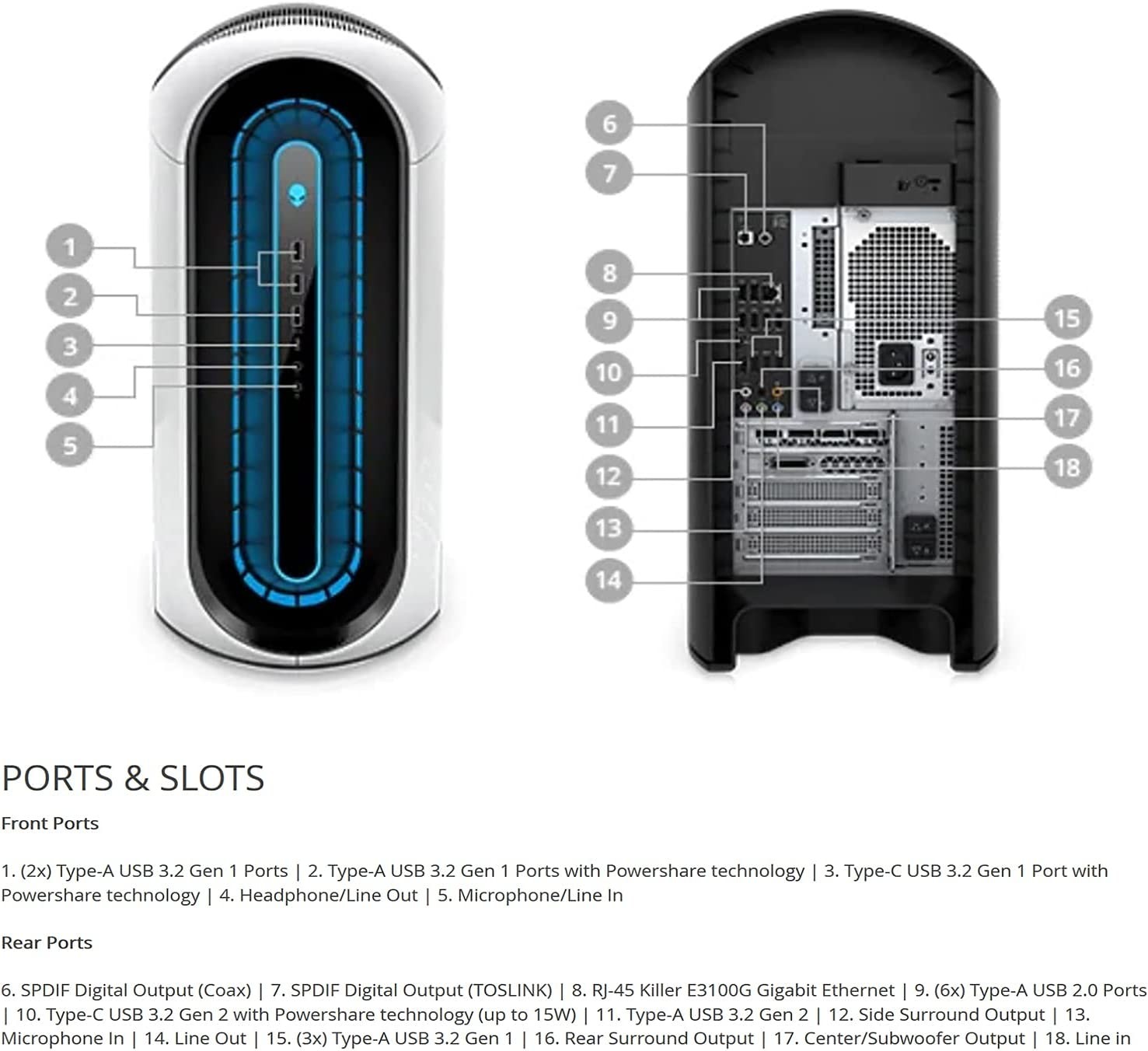 ▌Upgraded ▌Seal is opened for upgrade ONLY, from Base Model with Specis 16GB DDR4 RAM, 512GB PCIe SSD + 1TB HDD, Silver. 1-years warraty on Upgraded RAM/SSD from Seller, and original 1-Year Manufacture warranty on remaining components. 11th Gen Intel Core i7-11700F Processor @ 2.50GHz (8 Cores, 16 Threads, 16M Cache, up to 4.90 GHz). 64GB DDR4 XMP at 3200MHz Memory for full-power multitasking; 2TB SSD M.2 PCIe + 1TB 7200RPM SATA 6Gb/s 3.5" HDD let you boot from the SSD quickly while storing lots of data on the HDD GeForce RTX 3080 10GB GDDR6X. Killer Wi-Fi 6 AX1650 (2x2) 802.11ax Wireless and Bluetooth 5.1; Killer E3100 2.5G Ethernet NIC (Standard). Windows 10 Home (64-bit). Multi-Media Keyboard and Optical Mouse MS116AW. AlienFX RGB LED lighting adds an instantly iconic look to the Aurora. For our Silver, we've added 4 unique programmable zones with up to 16.8 million distinct colors.