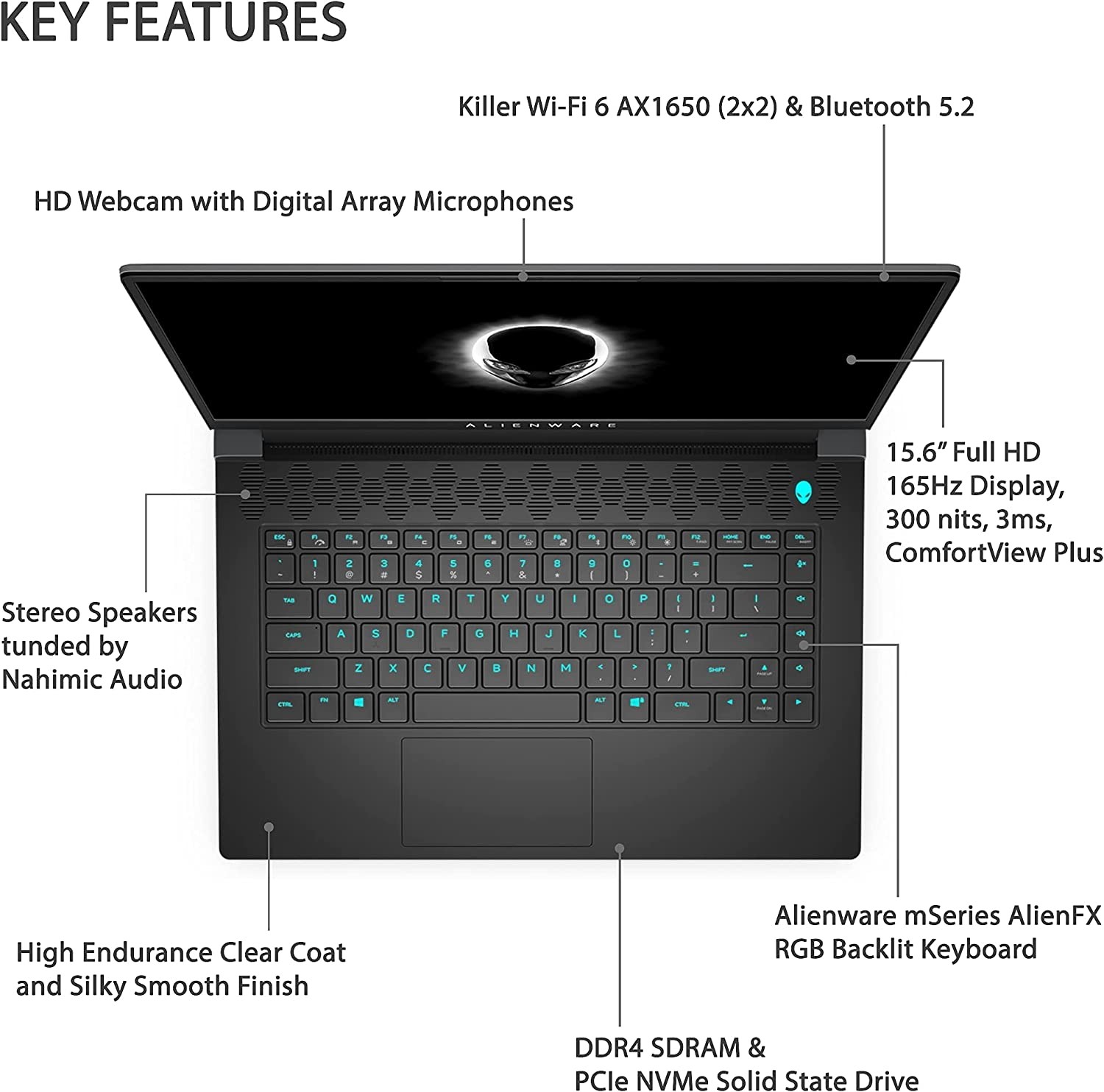 【Memory & Storage】16GB high-bandwidth DDR4 RAM to smoothly run multiple applications and browser tabs all at once; 1TB PCIe NVMe M.2 Solid State Drive provides fast bootup, ample storage space and speedy data transfer 【Latest Ryzen Processor】AMD Ryzen 7 5800H Processor (8 Cores, 16 Threads, 20MB Cache, 3.20 GHz base clock, up to 4.4 GHz max boost clock) with up-to-date 7nm technology and the most advanced AMD Zen 3 Core Architecture 【Dazzling Display】 15.6 inch FHD 165Hz 300 nits ComfortView Plus Display, sRGB 100% color gamut, 3ms response time, supported by GeForce RTX 3060 Graphics Card with 6GB GDDR6 dedicated graphics memory 【Tech Specs】3 x SuperSpeed USB 3.2 Gen 1 Type A; 1 x SuperSpeed USB 3.2 Gen 2 Type C; 1 x HDMI 2.1; 1 x 2.5 Gbps rated RJ-45 Ethernet; 1 x Global Headset jack; 720p HD Webcam with digital microphones; RGB Backlit Keyboard supported by AlienFX; Killer Wi-Fi 6 AX1650 (2x2) and Bluetooth 5.2; Stereo Speakers tuned by Nahimic audio; 6-Cell 86WHr Battery 【Operating System】Windows 10 Home 64-bit
