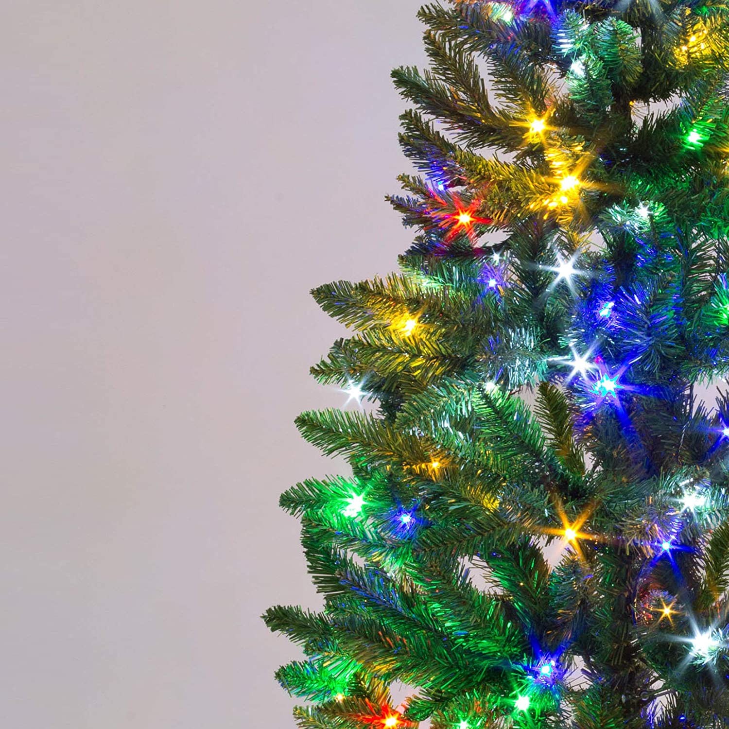 Design: Pre-Lit Slim Green Pine Tree which gives natural tree and best Christmas tree effect. Decorate your home with this beautiful slim Christmas tree. It has pencil point tips and comes with multicolour LEDs.