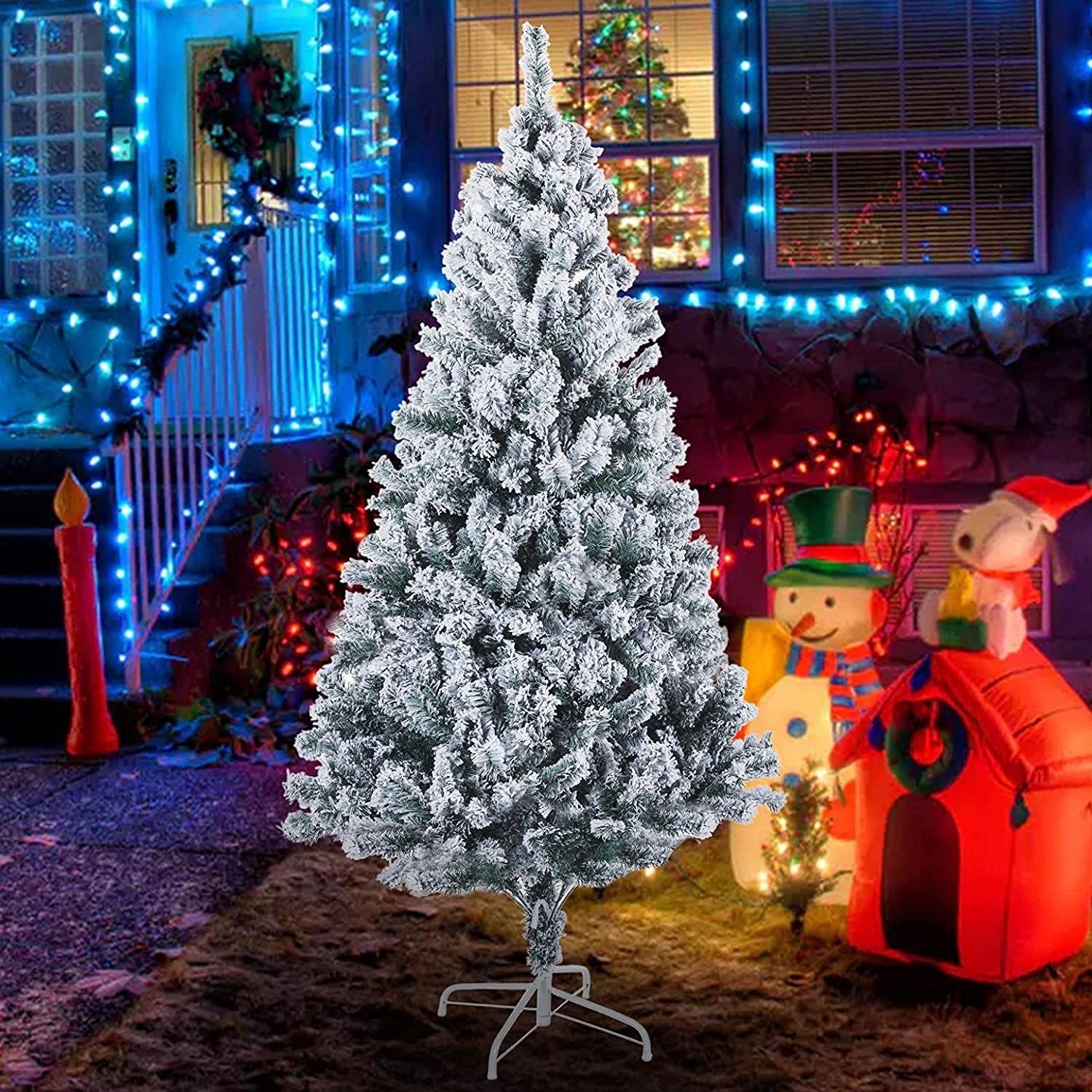 【6 FT CHRISTMAS TREE】Our 6 ft Christmas tree with 750 branches tips, seamlessly fall to form the tree shape, create the appearance of a full-bodied spruce Xmas tree for a life-like look. The Christmas tree offers plenty of space for ornaments and let you easily decorate lights and all pretty ornament, filling the room with Christmas cheer 【SNOW TREE WITH PINE CONES】Our Christmas tree equipped with flocked are realistic in looks that just like an outdoor tall pine tree standing in the snow. This snow Xmas tree is an attractive addition for your indoor and outdoor decoration! 【DENSE PVC TIPS】The branches of our Christmas tree are made from non-flammable PVC material, dense, eco-friendly and odorless. The PVC material also can add the anti-crush capacity to the tree, our tree with exquisite craftsmanship can serve your family longer festival time. 【STURDY METAL STAND】Our snow Christmas tree is equipped with a sturdy metal stand which is stable and durable for a long lifespan. Compared with a cheap plastic stand, our metal stand will provide the tree with greater support that keeps your tree standing straight in your room 【EASY INSTALLATION】Our artificial Christmas tree is very easy to assemble and dismantle, just put sections and metal stand together and comb branches so that the tree will achieve the best effect. You will finish the assembly of this tree only requires few steps, saving a lot of time. If you do not need it, you can fold it up for storage