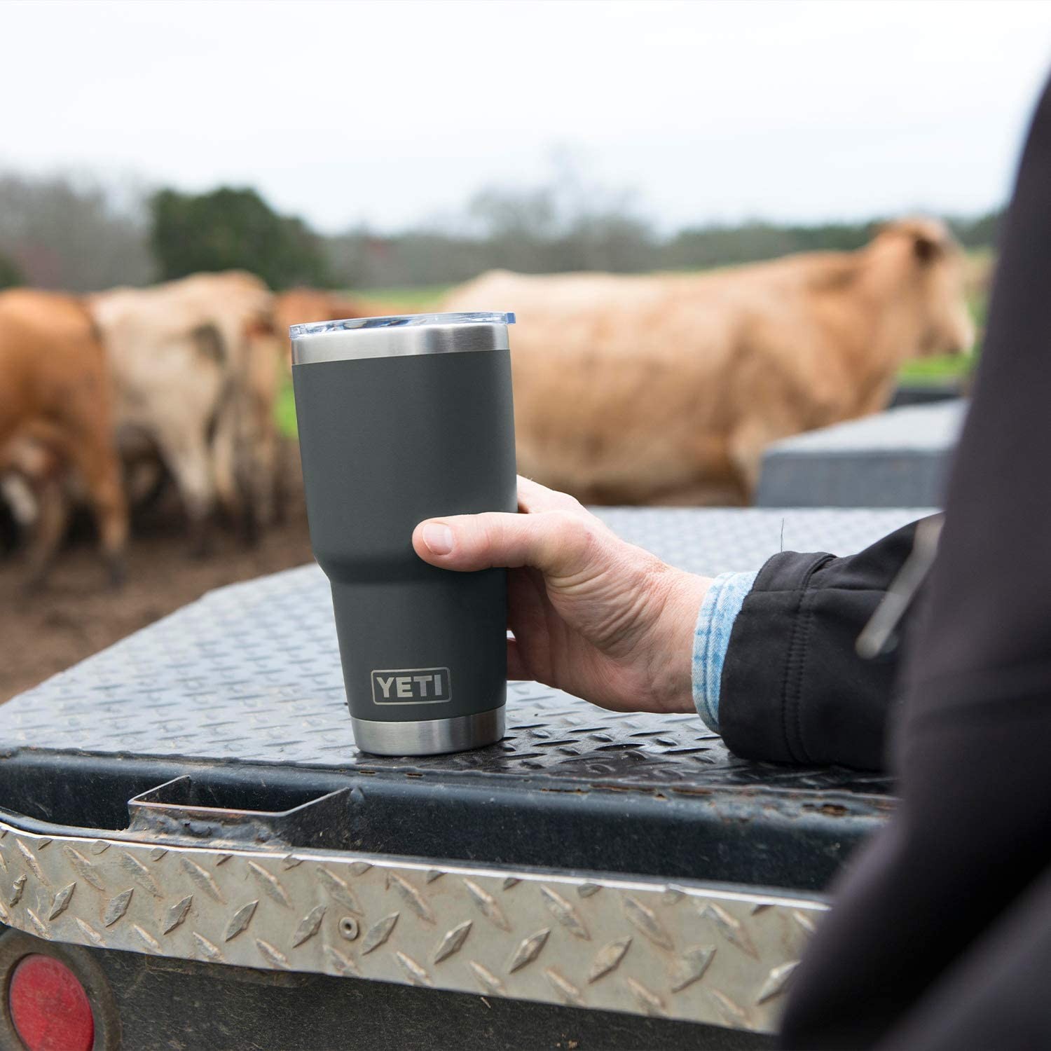 These Ramblers come standard with our YETI MagSlider Lid, the only drink lid that uses the power of magnets to keep your water, beer, or favorite drink on lock Our Ramblers are BPA-free, dishwasher safe, and have a No Sweat Design to make sure your hands stay dry We over-engineered these double-wall insulated tumblers with an 18/8 stainless steel body, which means your drink still keeps its temperature no matter how much of a beating this cup takes Keeps your dinnertime drink cool well past sundown or your coffee nice and hot throughout the morning The YETI 30 oz. Rambler Tumbler stands 7 5/8 in high and has a lip diameter of 4 in. All YETI Tumblers are sized to fit in standard sized cup holders