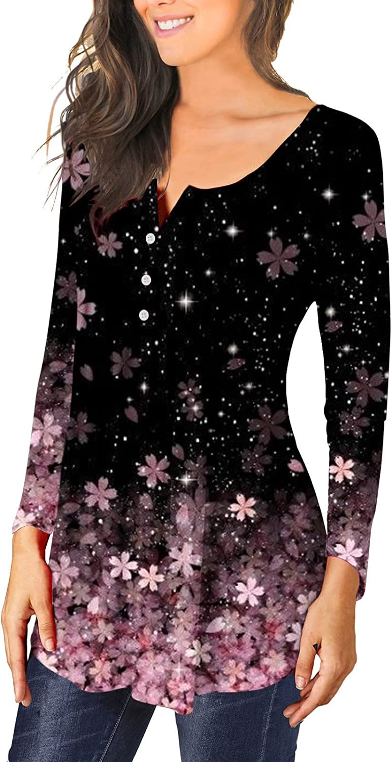 95% Polyester, 5% Spandex Made in the USA or Imported Button closure Machine Wash ♥ Material: 95% polyester, 5% spandex, very kind to the skin, comfortable and breathable. ♥ Feature: Loose style, U-neck with small V-neck, button front design, floral pattern, tunic tops to wear with leggings, womens plus size tops, womens long sleeve tops, long sleeve shirts for women,women tops and blouses. ♥ Matching: Basic shirts,chic,loose fit and comfortable,perfect fall and winter,easy to combine with jeans, shorts, skinny leggings for a subtle look. ♥ Unique Style: The fashionable floral Henley shirt makes this light blouse a timeless fashion that makes you both chic and classic. Folded on the front and back for a stylish design also hide the belly. ♥ Suitable Occasion: Casual/Party/Shopping/Work/Outside/Home/Wedding/School/Holiday Style.Many solid color and floral T shirt available for your choose. Add to your wish list, we will update new color every week.