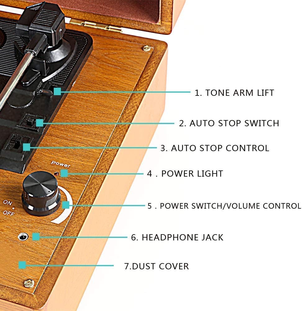 ♬【Convert Vinyl to Computer】This record play can not only play vinyls in 3-speed but also convert songs of vinyls to your computer in MP3 format easily. The convert cable and disk included in package. ♬【Expanded Connection Options】Playing songs of your non-Bluetooth devices through connecting them to stereo AUX IN of the turntable easily. Also,it can be connected to external speakers via the stereo LINE OUT to play vinyls.The AXU IN and LINE OUT cables included in the package. For personal listening, connect your headphones to the headphone jack. ♬【Take Your Tunes Anywhere】Perfect size and weight.You can shut the cover meanwhile keep vinyl playing and pick it up like a mini suitcase anywhere. The blend in retro and contemporary design give you the ultimate flexibility to listen to music where you want and how you want – a great choice for vinyl lovers. ♬【Premium Sound Quality】This 3-speed (33 1/3, 45, 78 rpm) record player features UPGRADED sound quality with minimum vibrations because of the premium build-in speakers at 2*1 wattage. An extra stylus is included. ♬【Retro Style and Spotless Craftsmanship】The record player blended vintage looks & modern features. The exquisite treatment process in every detail in painting,polishing and buttons of the turntable combined with unparalleled sound quality and design. The turntable is fit for a attentive gift for your lover and friends and relatives.