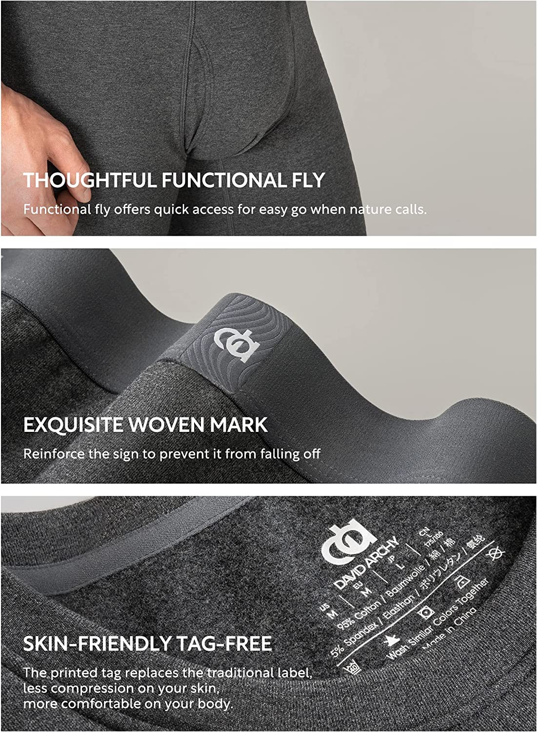 96% Cotton, 4% Spandex Hand Wash Only Stretchy Cotton Fleece Lined Fabric: Premium cotton fleece lined thermal set with spandex stays warm, keeps stretchy, feels smooth soft and stay durable for your winter wearing Double Layer Pouch Design: For providing men's private parts more protection and space, double layer pouch on the thermal bottom reduces most men's rubbing problems and embarrassing adjustments, offers you a more free performance even the outside cold air activities Functional Fly: Considerate design on the thermal bottom with solid fly opening for easy-go when nature calls Crew-Neck Thermal Top: Classic style and stylish neckline designed to facilitate the cover of your neck for providing maximum warm and comfort Versatile Performance: Ultra soft hand feel, heat-retention and comfortable are great to wear at home or add an extra layer of warmth under your clothes