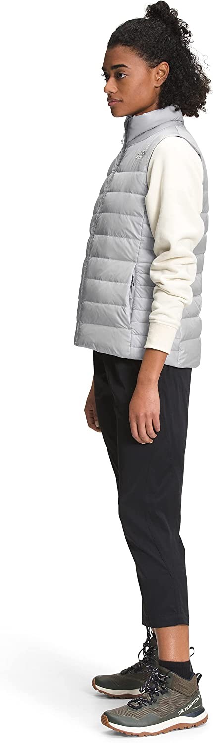 100% Polyester HYBRID INSULATION. The wind-resistant Women's Aconcagua Vest pairs natural and recycled synthetic insulations for a great warmth-to-weight ratio and a flattering fit. RECYCLED DOWN INSULATION. Take on the cold with superior warmth thanks to 550 fill goose down. Including 150 grams of Heatseeker Eco 70%-recycled polyester insulation in the hood, yoke, underarms and pockets, you'll easily stay warm — even in wet weather. WINDPROOF FABRIC. Made with our advanced WindWall protection and coated with a Durable Water-Repellent (DWR) Finish, this lightweight, 100% windproof jacket keeps you warmer and more comfortable all day long. STANDARD FIT. With a flattering shape and ample mobility, this jacket is perfect for easy wear or layering up. Whether for a casual look in town or active days in the wilderness, you'll experience freedom of movement through the shoulders and chest. OUTDOOR VERSATILITY. Never Stop Exploring with thoughtful features that help you go further — stay covered and bundled with a center front zip and keep your hands comfortable in secure-zip handwarmer pockets.