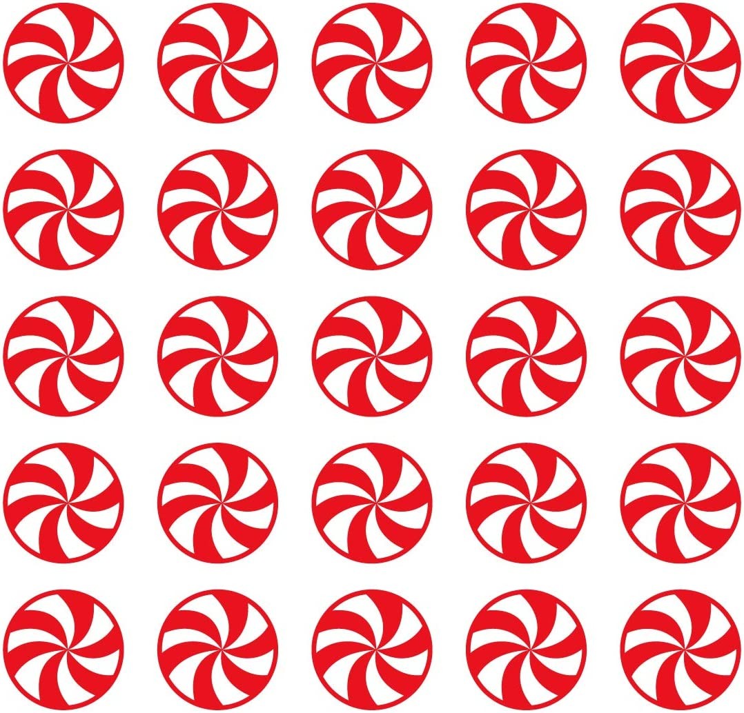 Set of 25 Vinyl Wall Art Decal - Peppermint Candies - from 5" x 5" Each - Trendy Fun Holiday Season Candy Design Sticker for Kids Room Playroom Living Room Storefront School Coffee Shop Decor (Red)