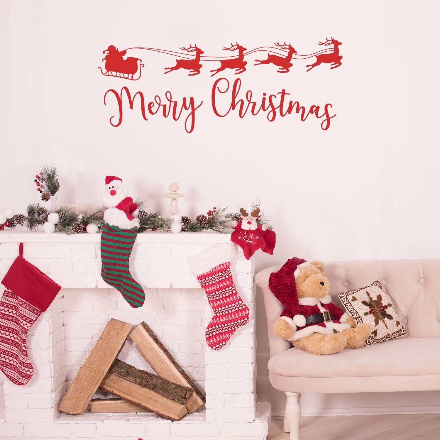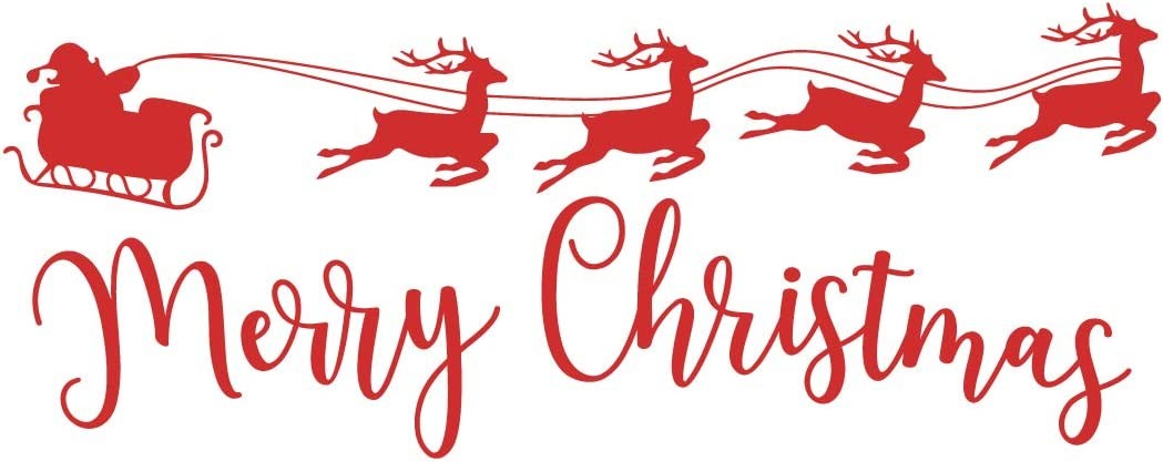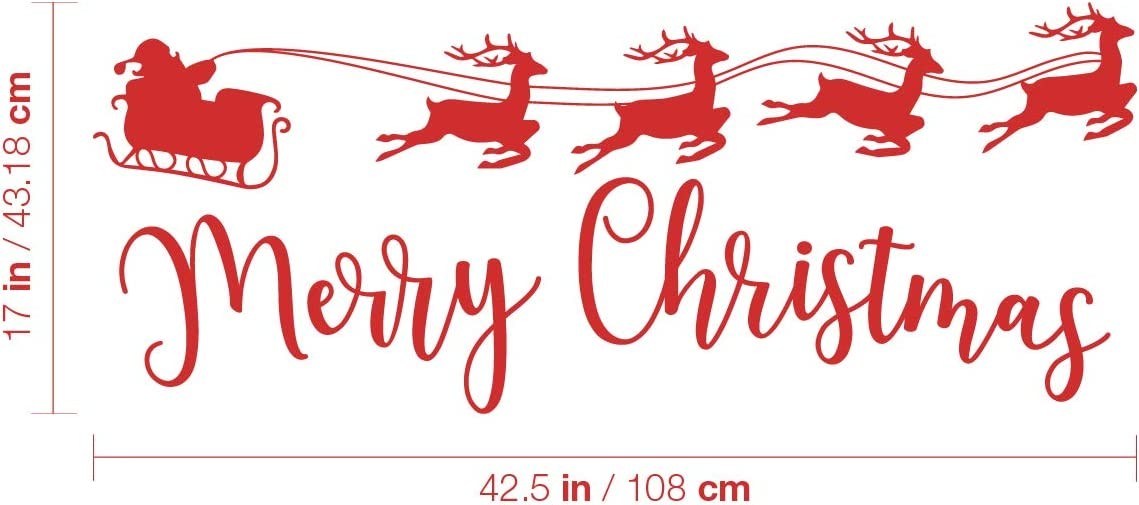 Vinyl Wall Art Decal - Sleigh Merry Christmas - 17" x 42.5" - Reindeer Holiday Season Trendy Seasonal Quote Sticker for Home School Living Room Work Office Classroom Store Window Decor (Red)