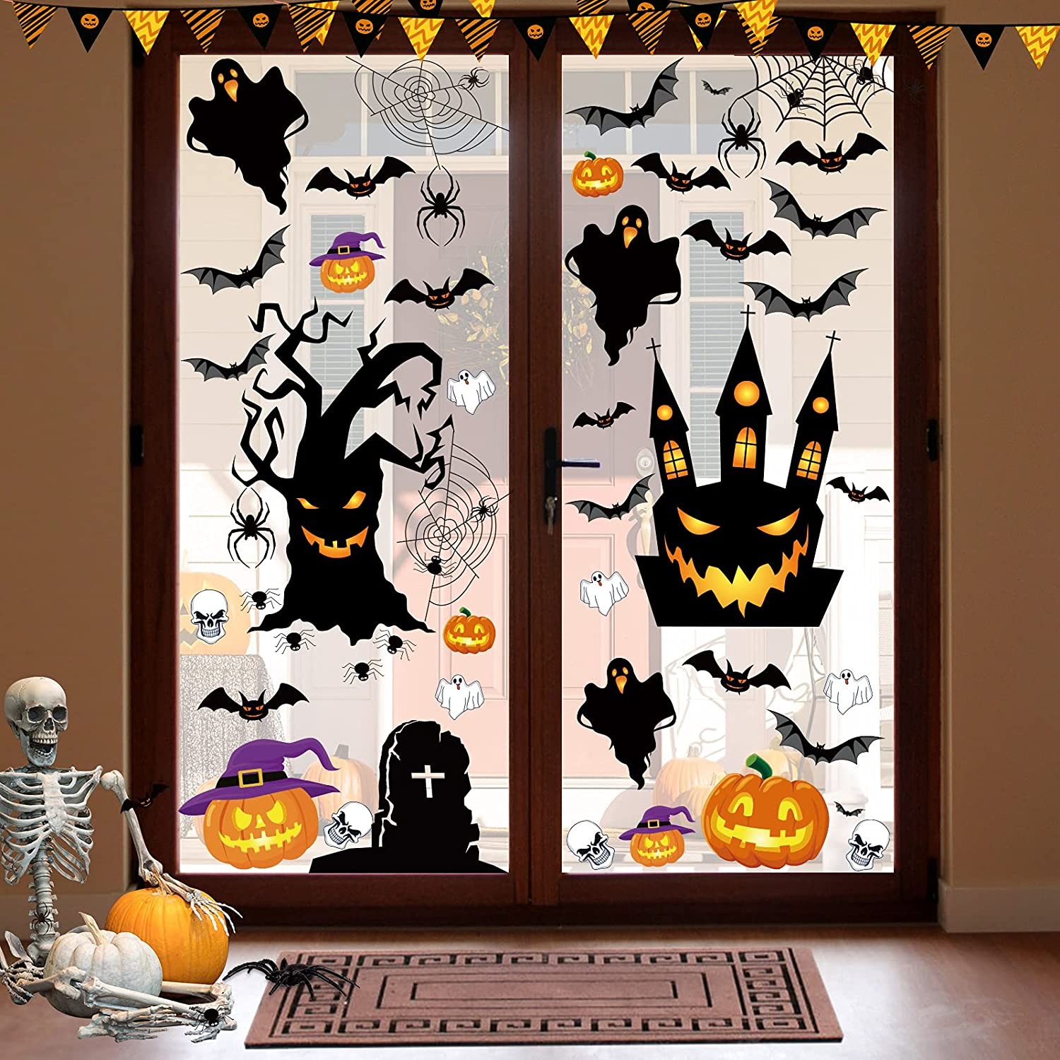 ?SCARY HALLOWEEN WINDOW DECORATIONS: Window decals come with 206 pcs assorted Halloween themed stickers in 8 large sheets, including spiders, webs, scarecrow, pumpkins, dead tree, castle, bats and ghosts. Combined with vibrant orange and gloomy black, Halloween window clings create plenty of spooky scenes, will definitely catch everyone's eye. Get these decals home, add a strong Halloween vibes!