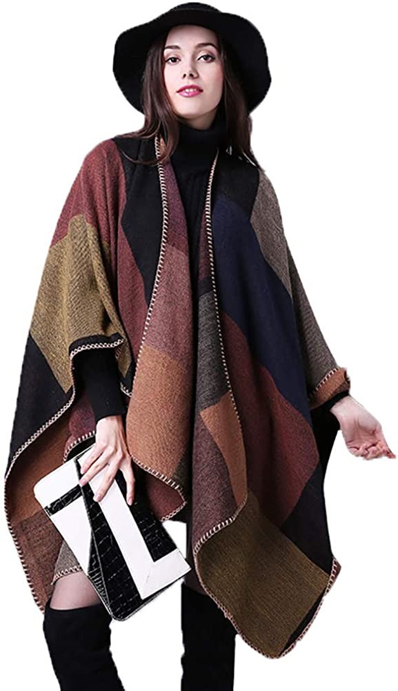 Fashionable cape shawl, Oversized plaid blanket scarfs wrap winter fall scarves offers an effortless elegant alternative. Best gift for your family, friends and yourself.