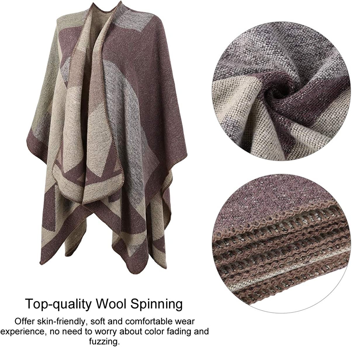 Imitation cashmere Superior Fabric - This Women Winter Shawl adopt top-quality wool spinning with soft and fine touch feel, capable to offer skin-friendly, comfortable and warm wear experience, no need to worry about color fading and fuzzing Exquisite Workmanship - Delicate knitting technology of this Women Warm Wraps Cape with flawless and solid sewing edge, enable to reduce unnecessary friction and offer maximum comfort for you Multiple Wearing Ways- This women winter ponchos pashmina is double sided. Both sides are in nice look. Buy one shawl you get value of two. Also, this Warm Lengthened and thickened shawl allow you to make it serve as scarf, shawl, wraps, pashmina, cardigan, coat and blanket equally, extremely meet your different wearing needs Generous Size - One plus size womens shawl fits all different stature. Length 63"/160cm; Width 53.1"/135cm. This oversized shawl wraps can hide your unperfect waist/hip/thigh to show your stylish look Must-have Scarf in winter - A excellent scarf for both indoor and outdoor occasions like shopping, dating, sleeping, party and fashion show, protect you against cold wind and keep you warm in chilly days. This Shawl is also best matched with clothes you would wear in cooler weather, like coat, sweaters, dress and suit. You can send it to your friend, colleague or family member as Thanksgiving, birthday or Christmas gift