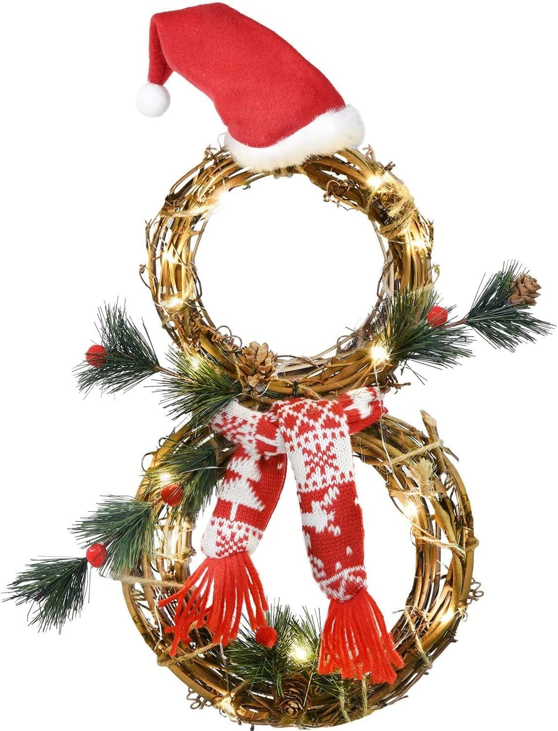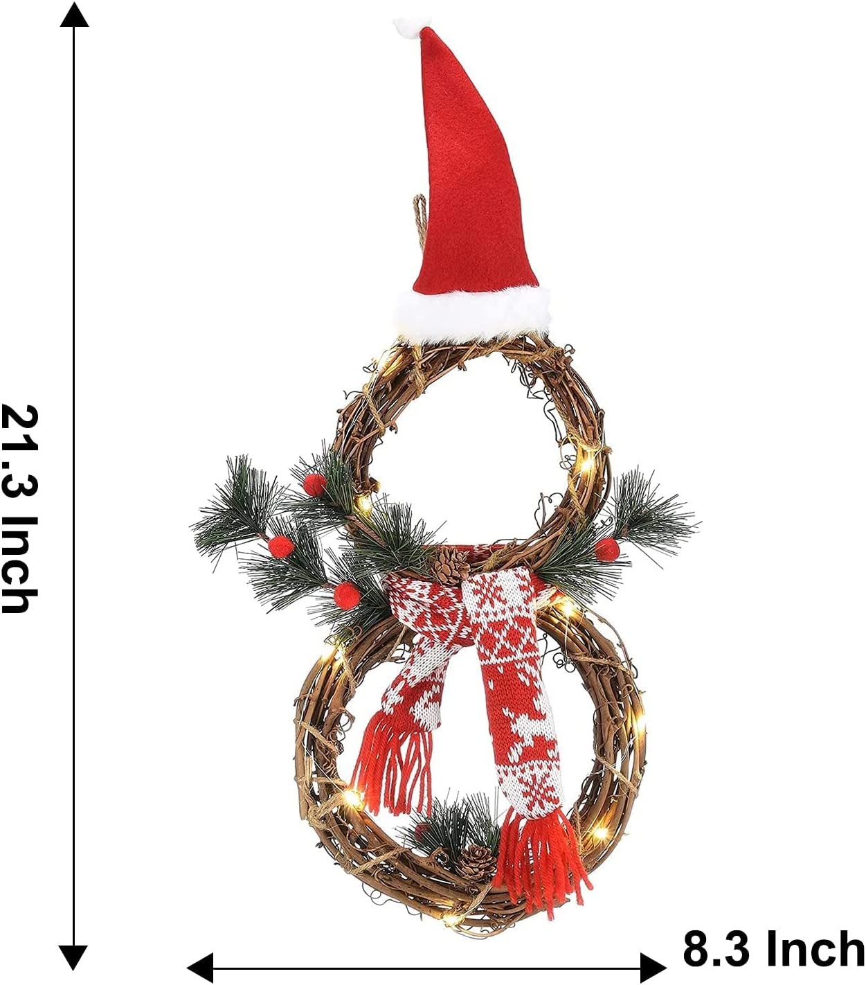 ❄️⛄️【Charming Christmas Decorations】? Not like traditional wreaths are all round, this lovely wreath garland has snowman shape with christmas hat and scarf design. It comes with warm string light decorated. Red Berries, Pine cones, vivid pine branch just like its hands which add joy to your Christmas. Get visitors into the Christmas spirit instantly with these fun and festive Christmas signs. It keeps saying “Merry Christmas, Welcome!” ❄️⛄️【Handcrafted and Delicate Design 】? LED Christmas wreath is made from Rattan and knitting, rattans were processed by high-temperature steam, non-toxic and harmless. With LED light string(not include battery). Christmas Essentials, it will add more holiday atmosphere and bring festive radiance, attracting the sights of neighbors and friends. In the winter night, it glows in the dark, birng your family warmth. Size: 21" in height and 8.3" bottom wide. ❄️⛄️【Add Christmas Atmosphere】? Our Christmas snowman Wreath Hanging Decor is great for the coming Christmas,cute snowman wearing a xmas hat which fill your home with a thick Christmas atmosphere.The perfect way to decorate the doors of your home. Your house derserve a stylish and eye-catching new year scene. All weather-proof and easy to store. You can use it year after year, and store it for the next holiday. ❄️⛄️【Easy To Use】?- No assembly required. Wreath has loops on the back for hanging ease. Our wreaths naturally look wonderful positioned above the mantel and perfect to hang on your front door or in your home as you celebrate the Christmas & holiday season.If you are looking for a wreath that is highly visible from the street and is sure to bring many compliments from your neighbors, this wreath is for you. ❄️⛄️【Multi-scene application】? Christmas door Wreath is perfect on your front door or anywhere inside your home, dress up your front porch/entryway/gardens. Great to decorate home, shop, office and classroom decoration. Ideal for wall, fireplace, shop window, rooms and Christmas tree decoration,make your home the most eye-catching in street. Great Christmas present for your family members, neighbors, friends or colleagues etc., share Festive pleasure and help ring in the holiday.
